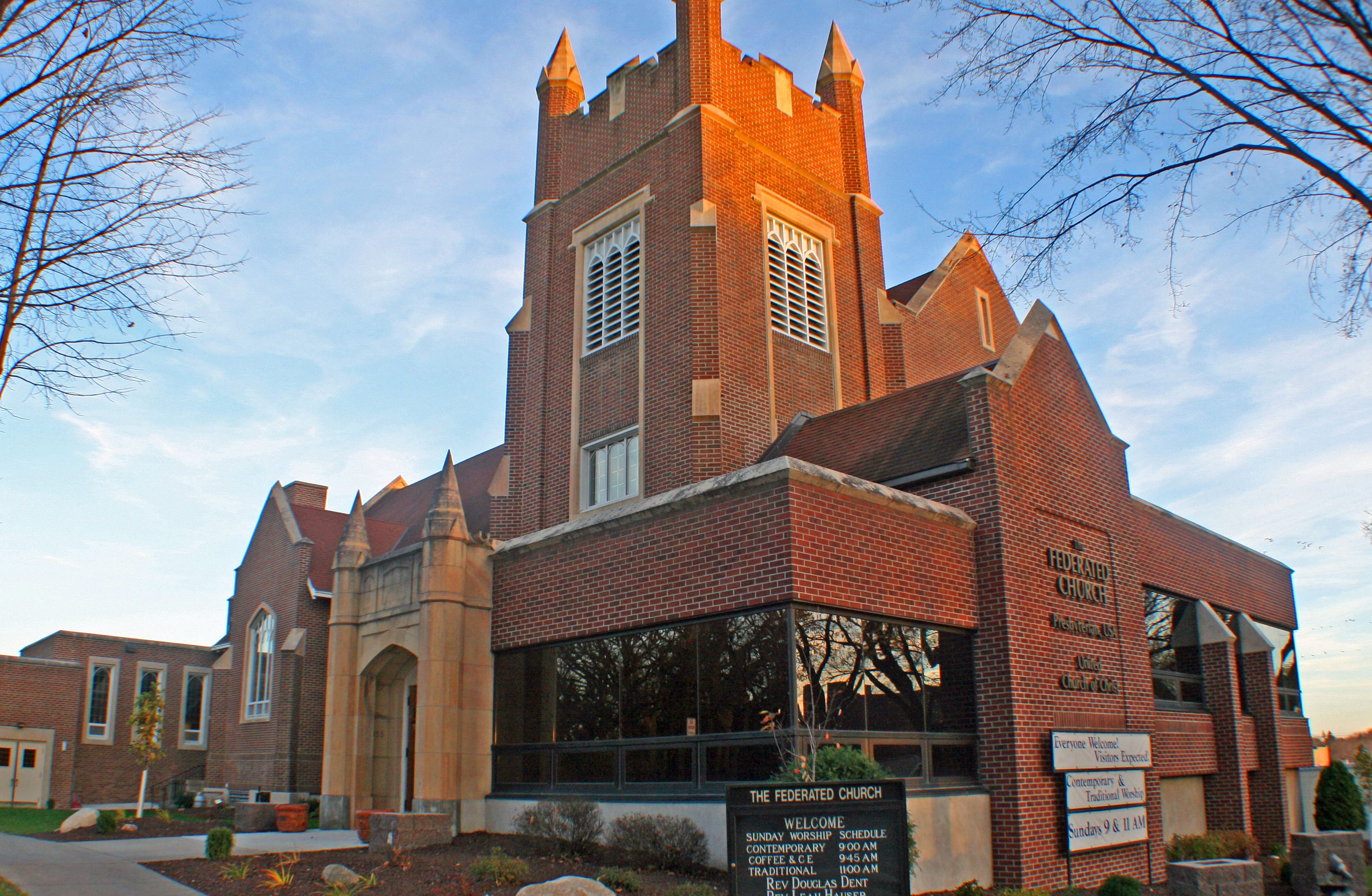 The Federated Church began as, and remains, two separate but closely associated congregations, a joint ministry of the Presbyterian Church (USA) and the United Church of Christ (UCC). We have now been federated successfully for over one hundred years and are excited to begin our second century of service. We feel called as a congregation to promote spiritual growth and provide an open, caring atmosphere that affirms each person’s faith journey and reflects Christ’s love under God’s guidance and direction.